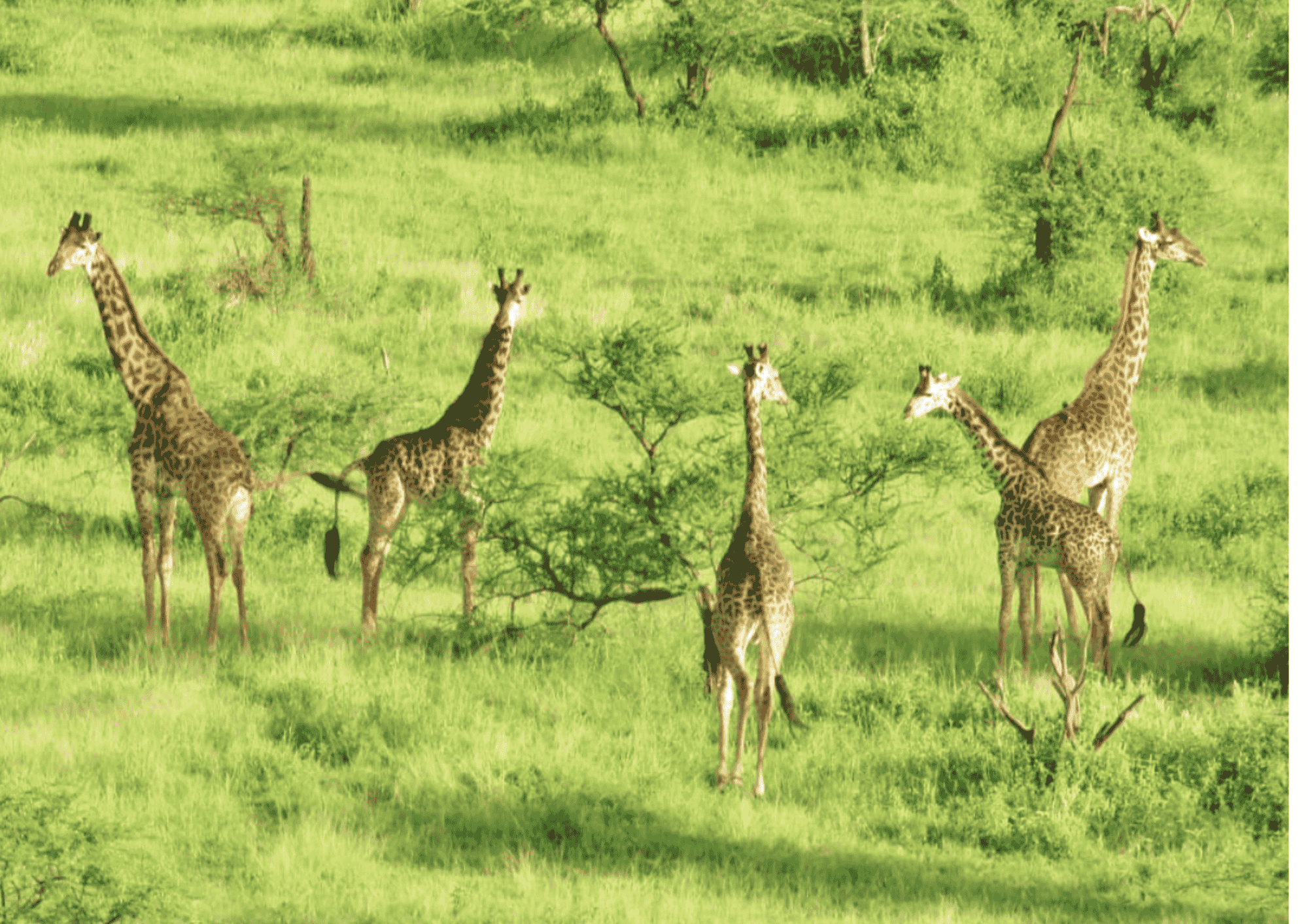 Vanaf boven zie je hoe giraffen langzaam door het gras bewegen, hoe zebra’s en impala’s samen drinken bij waterpoelen, en hoe het licht zich verspreidt over de Tarangire-rivier. Het is een ervaring die zowel ontspannend als onvergetelijk is – een moment van stilte en verwondering midden in de Afrikaanse wildernis.