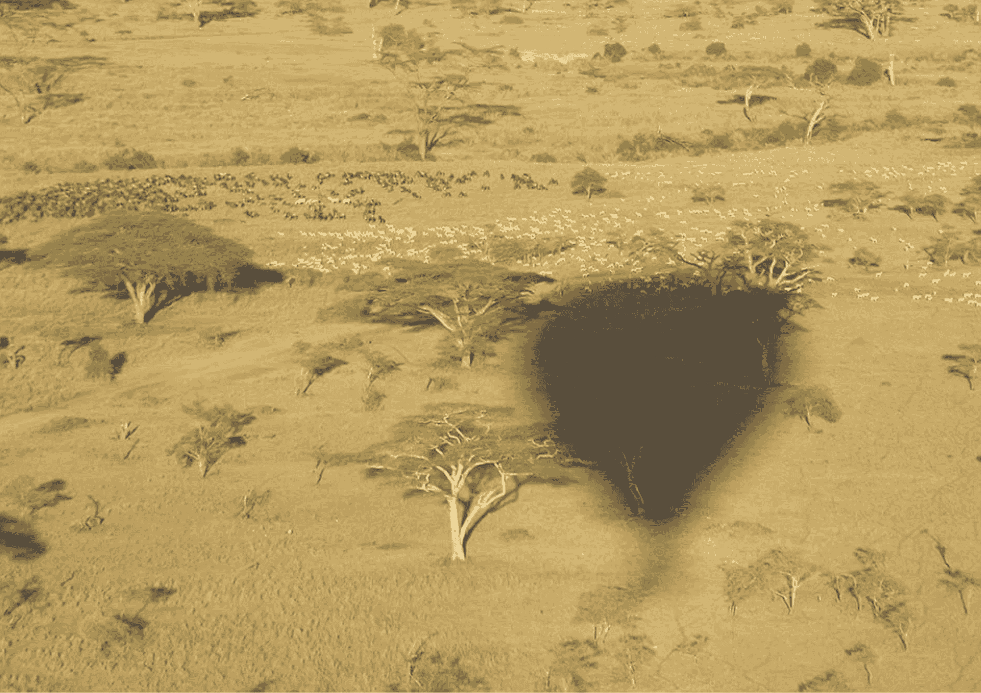 Elk jaar trekken meer dan 1,5 miljoen gnoes en honderdduizenden zebra’s door het park – een spectaculair zicht vanuit de lucht. - Je tijdens de vlucht geen dieren stoort?